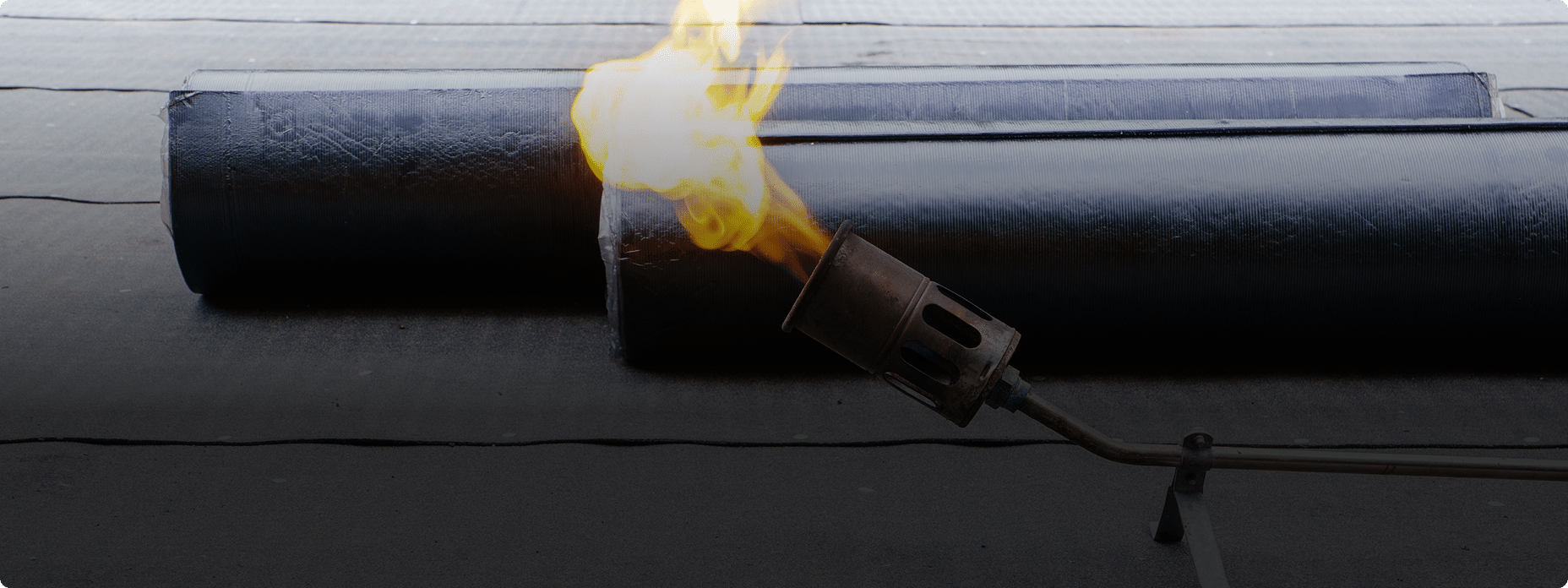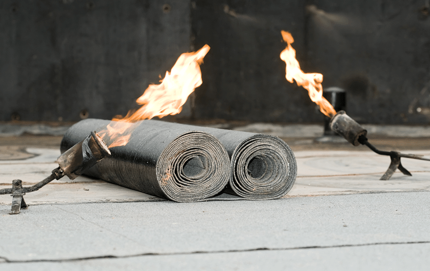 - The installation process consists of mopping hot bitumen material onto the surface of the roof and felt is then applied on top of that.