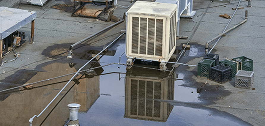 Ponding is a problem when water does not drain off the roof within 48-hours following a rainfall. In addition to the obvious problem with ponding, excess water on the roof can promote vegetation growth.