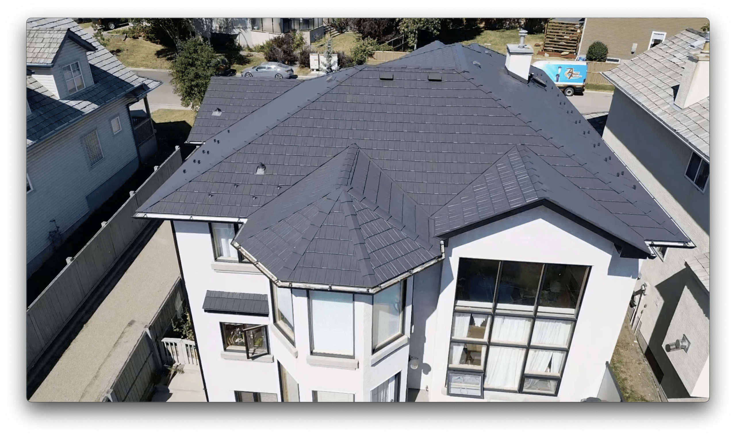 This Iron Wood Shake metal roofing project at 151 Edgeridge View NW in Calgary is a great example of how modern metal roofing fits seamlessly into established Alberta neighbourhoods.