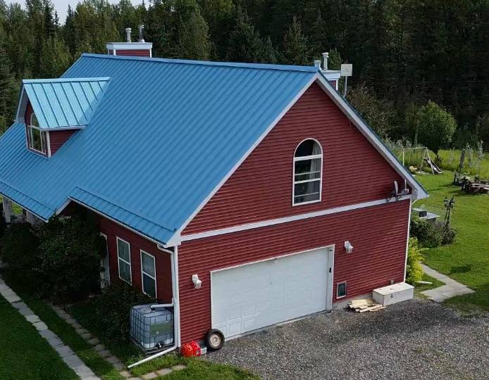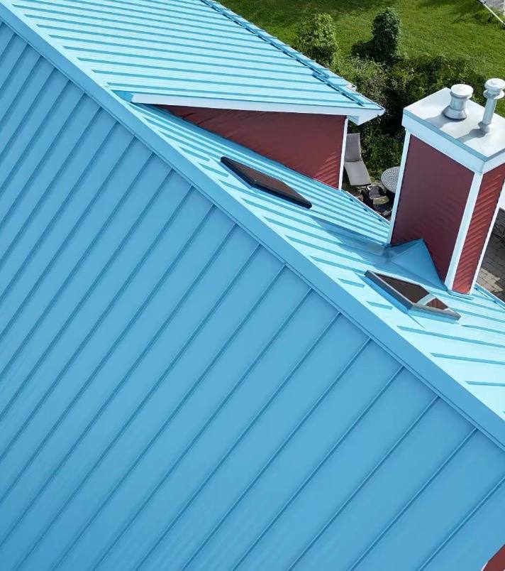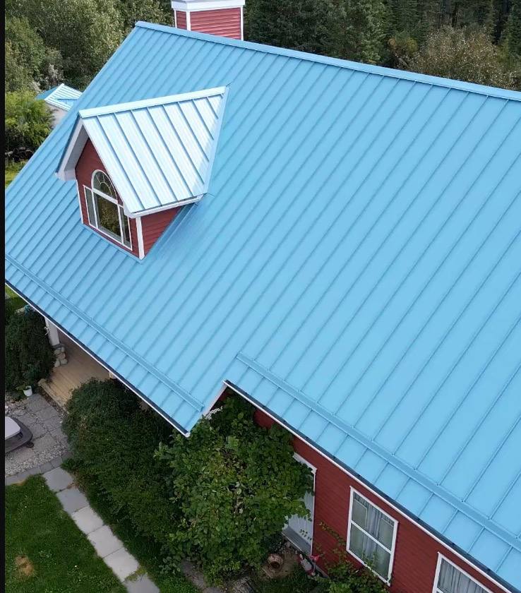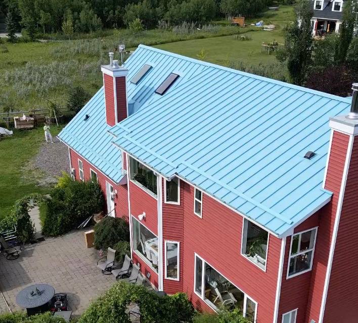 Our Renoteck crew gave this Priddis acreage a full refresh with a baby-blue standing seam metal roof that really pops against the classic red siding. The clean continuous seams and hidden fasteners are built to handle prairie wind, snow, and hail while keeping the home cool in summer and leak-free in every chinook. It’s a bright, cheerful country roof with big-city durability—ready to protect this family’s place just outside Calgary for decades.