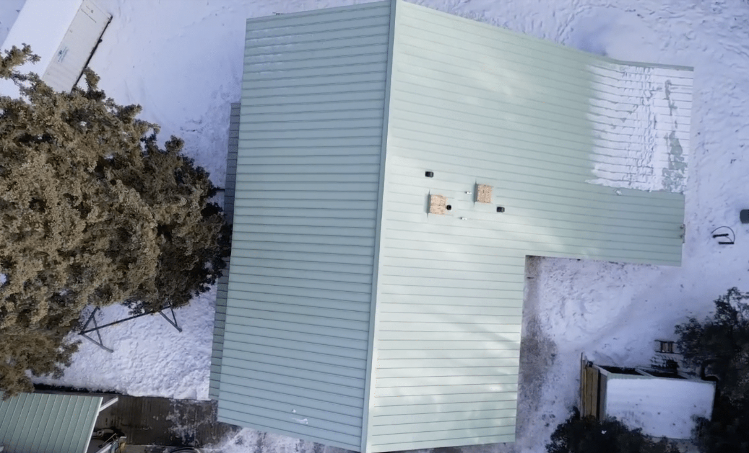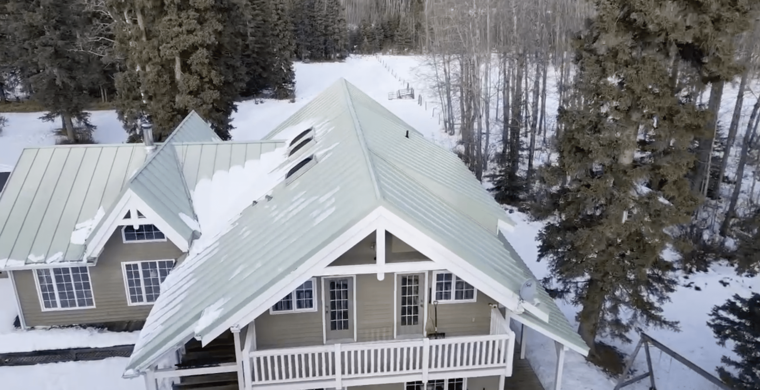 This project was completed in Priddis, a quiet wooded area just outside Calgary where the weather can shift fast and snow load is a real factor every winter. For this home, we installed a standing seam metal roof in Mist Green, a soft natural colour that blends beautifully with the trees and surrounding landscape.