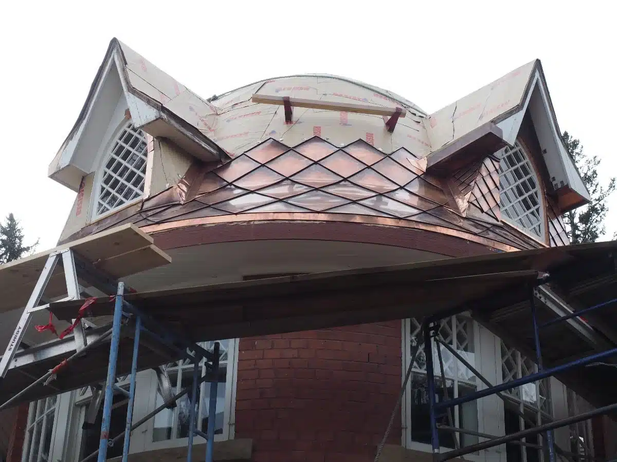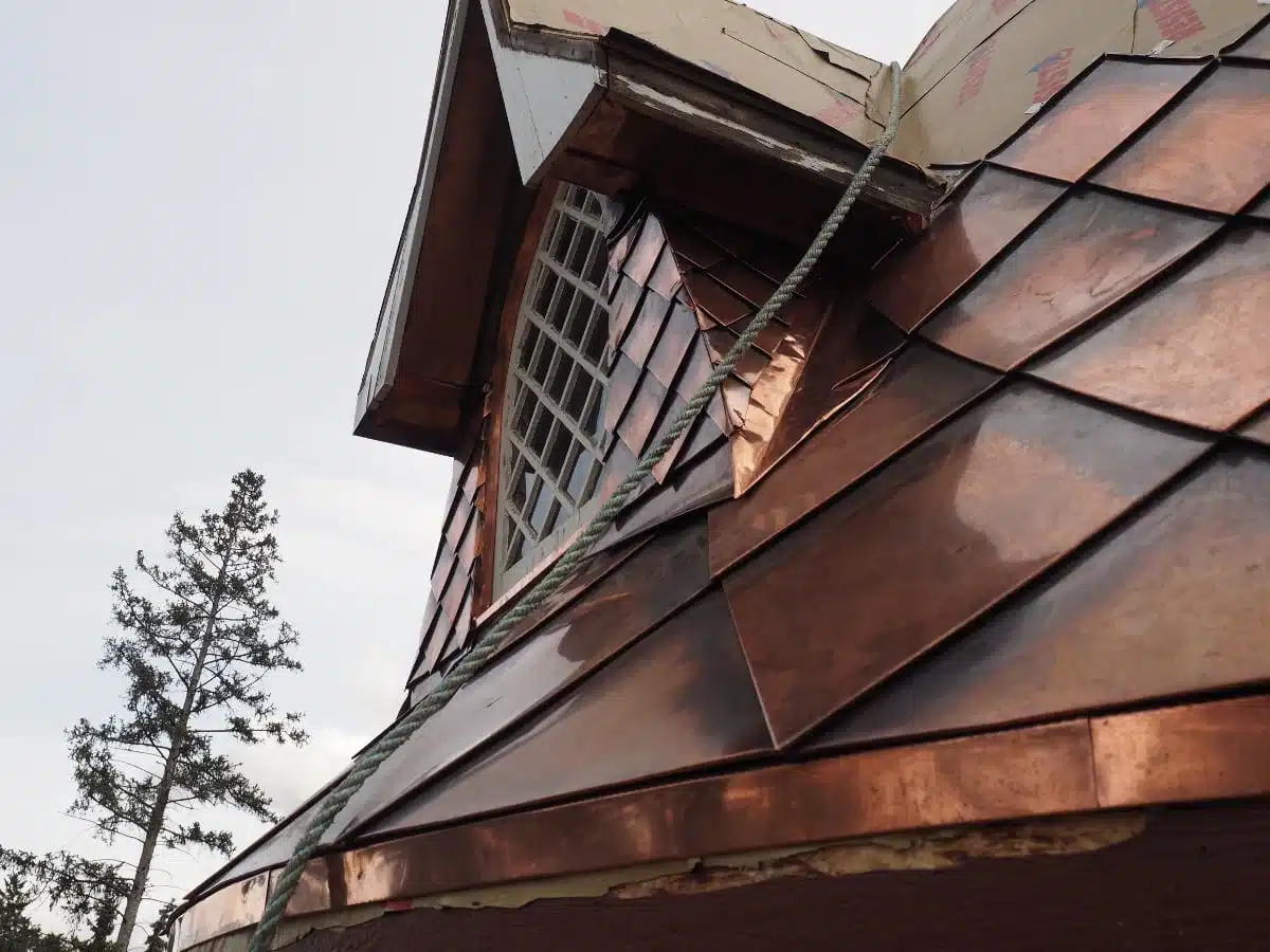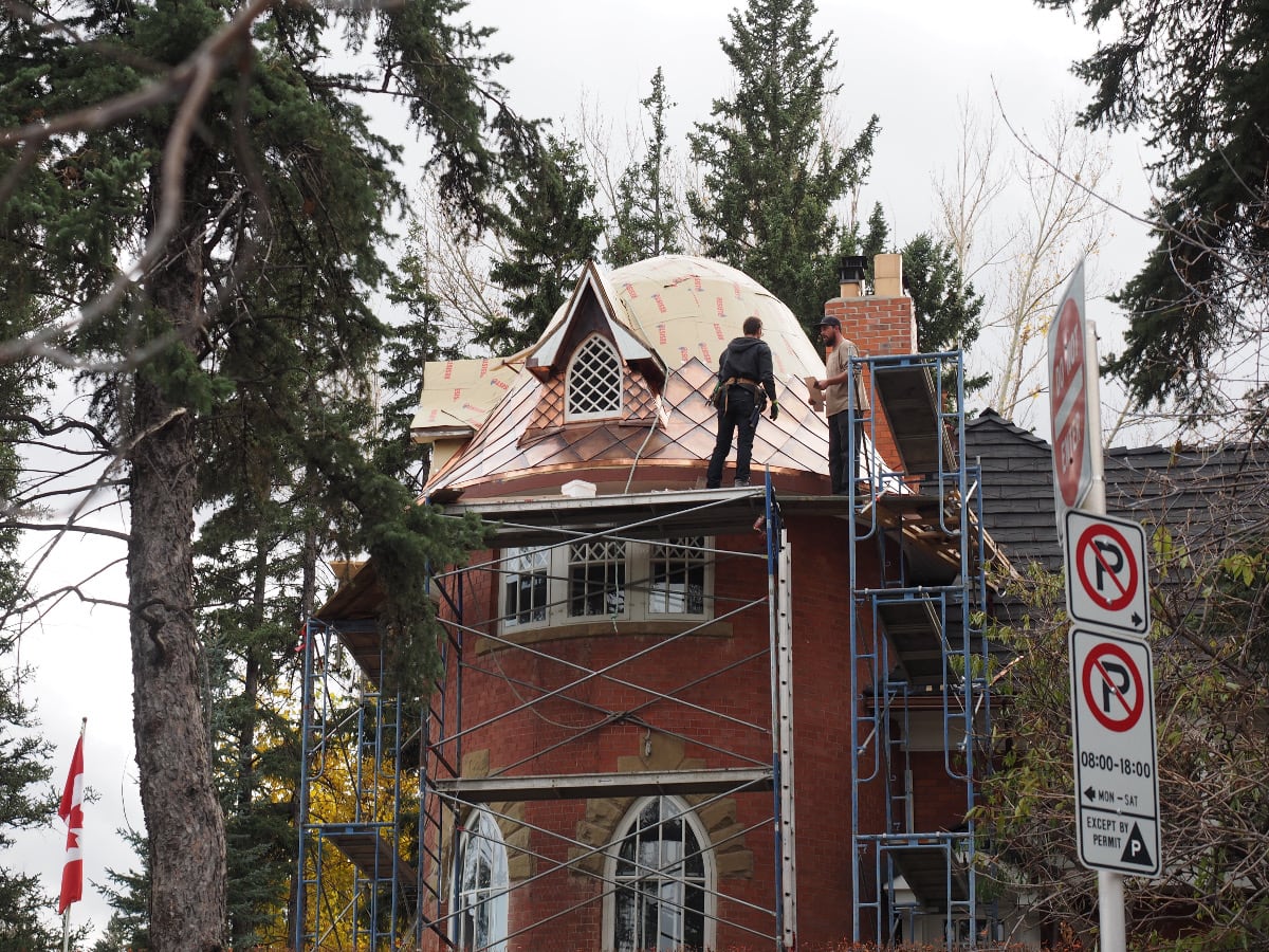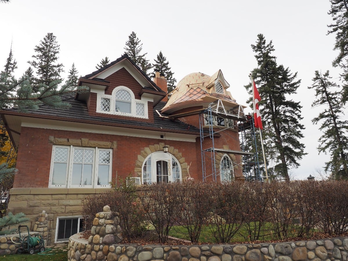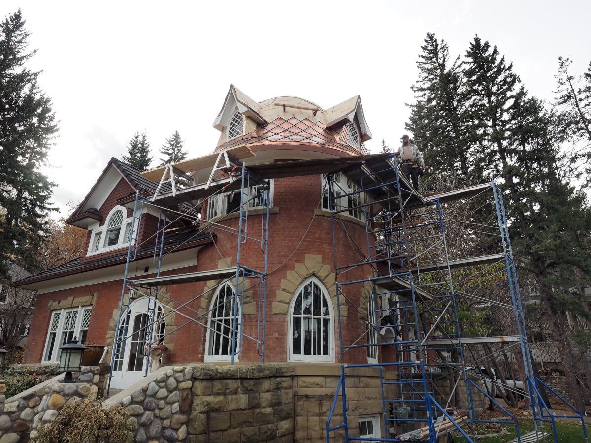 The original roof was due for a replacement. The owners chose to go with a metal roof. The style they chose was ironwood shake. The pieces interlock using hidden fasteners. The profile resembles cedar shakes and is available in a range of colours. A new roof in a classic style adds beauty to an older home. The facelift results in a higher home value and provides a maintenance free roof for decades to come.