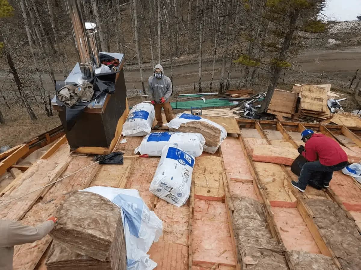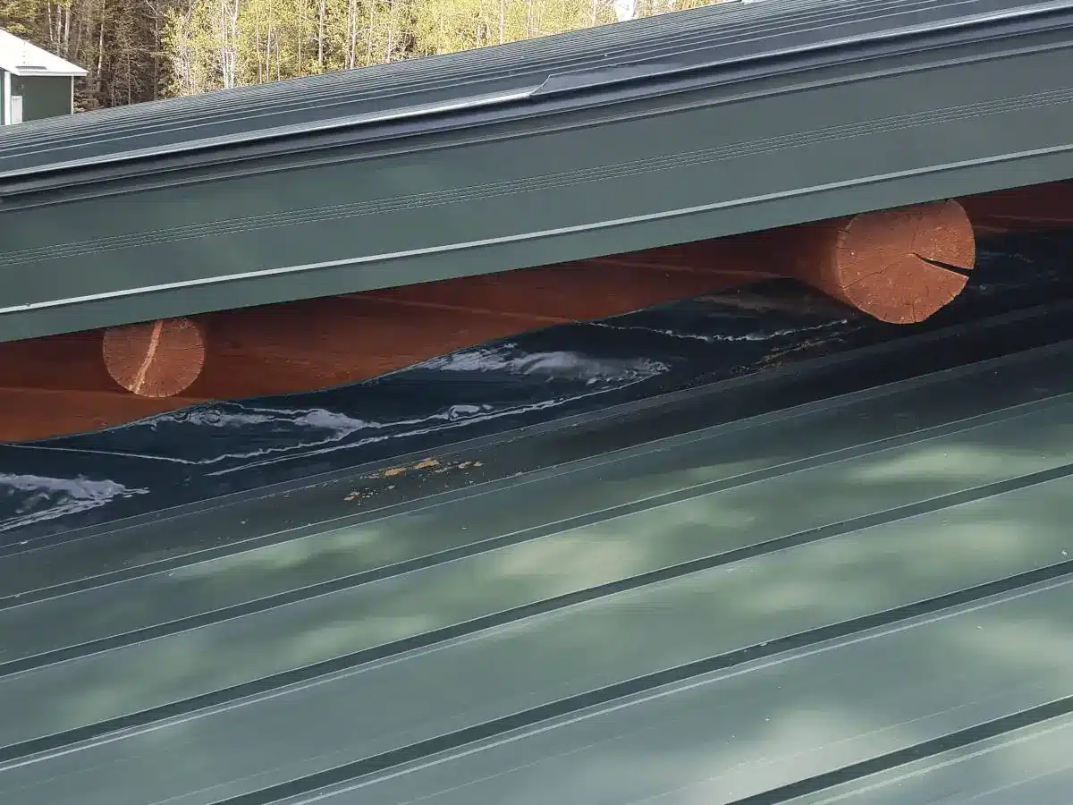 A standing seam metal roof is perfect for this log home in rural Alberta. Fully interlocking panels provide weatherproof protection for many decades to come.