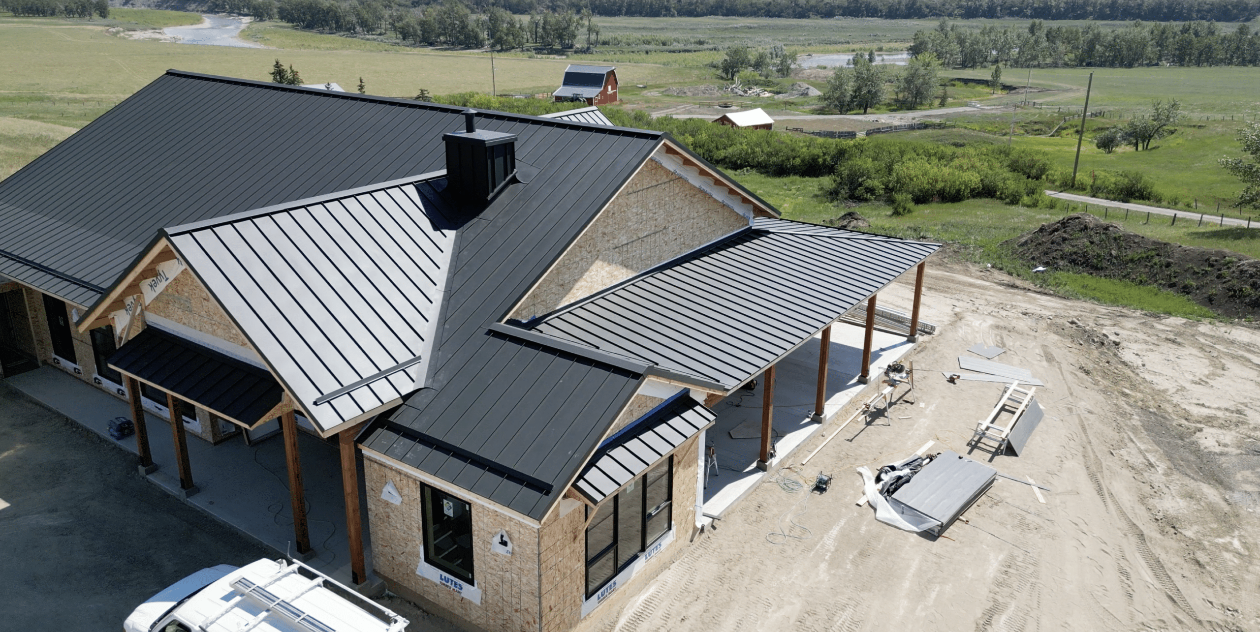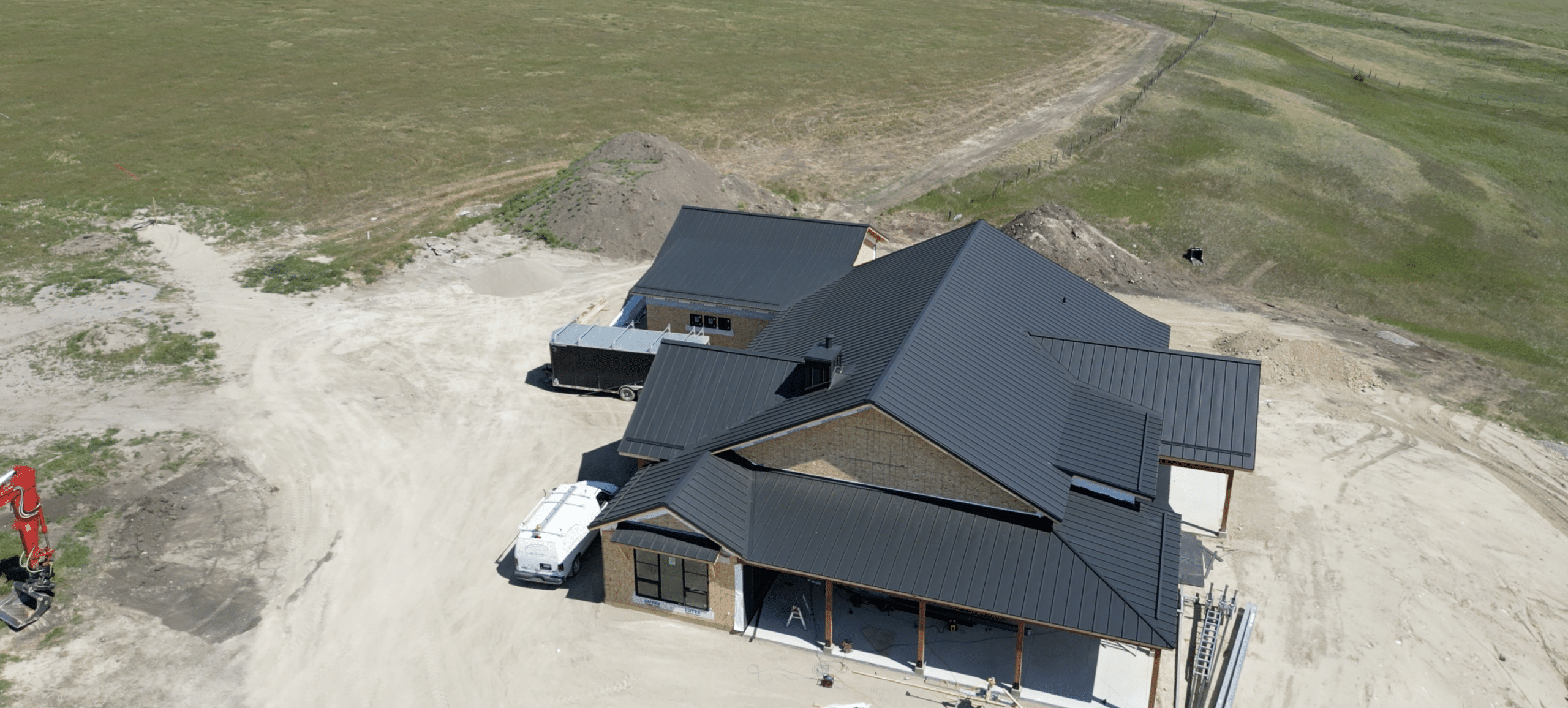 The standing seam system provides superior water shedding and thermal movement control, making it an ideal choice for both rural and residential properties in Southern Alberta. Every panel was custom-formed and installed with precision detailing around hips, valleys, and penetrations to ensure durability and a tight, weather-resistant seal.