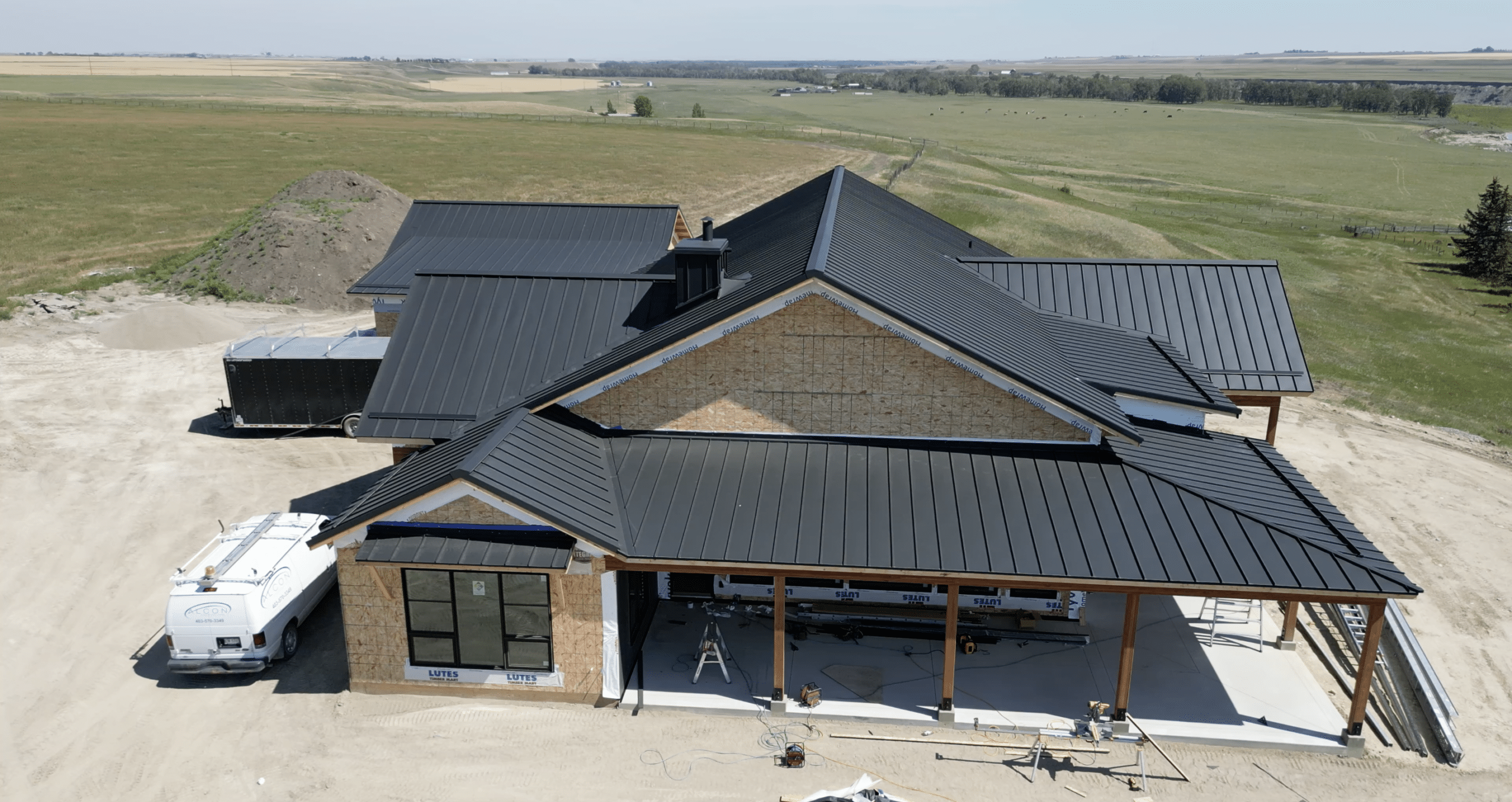 This standing seam metal roofing project in High River, Alberta features a clean, modern charcoal grey finish installed using a premium hidden-fastener system. Designed to handle Alberta’s strong winds, heavy snow loads, and temperature swings, this roof delivers long-term performance with a sharp, architectural look.
