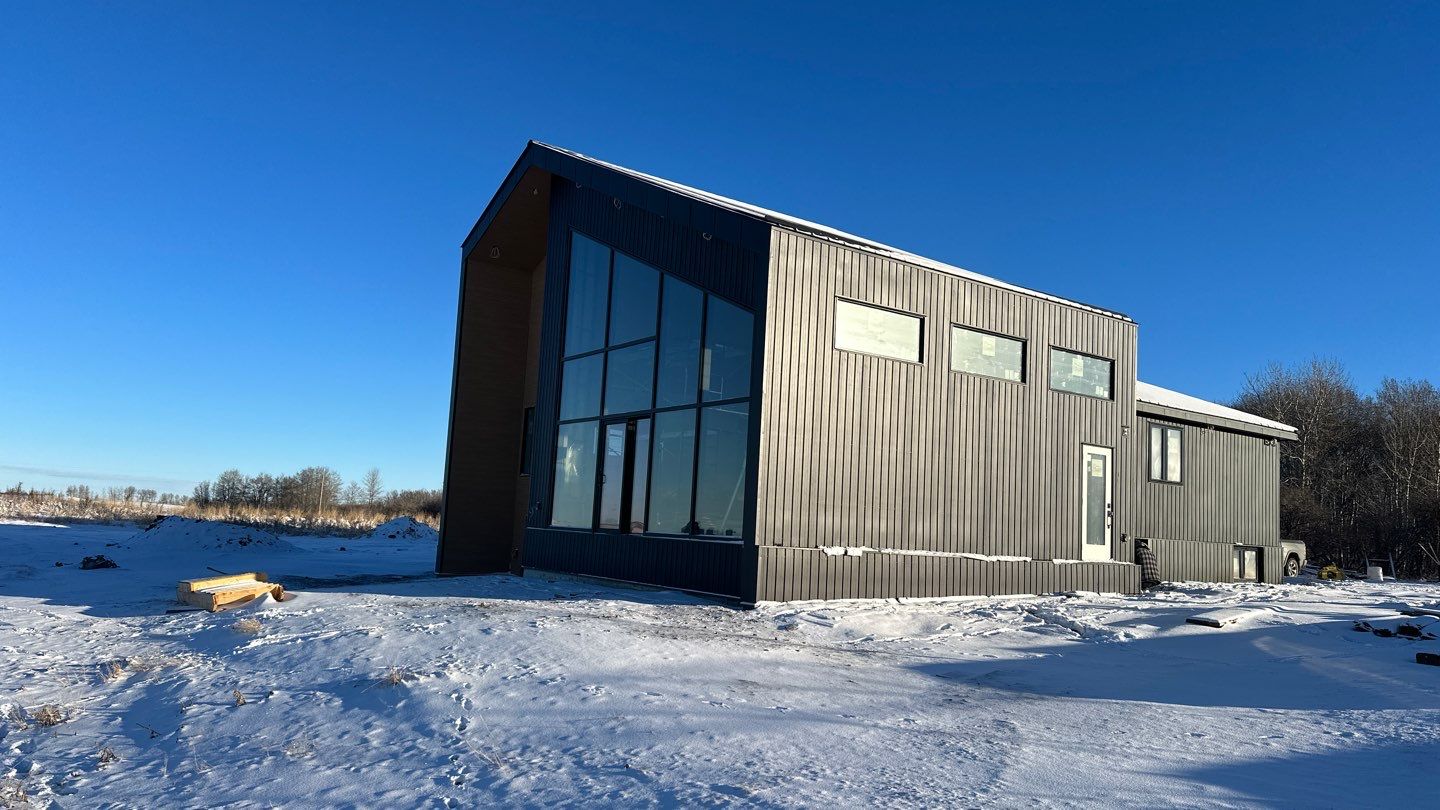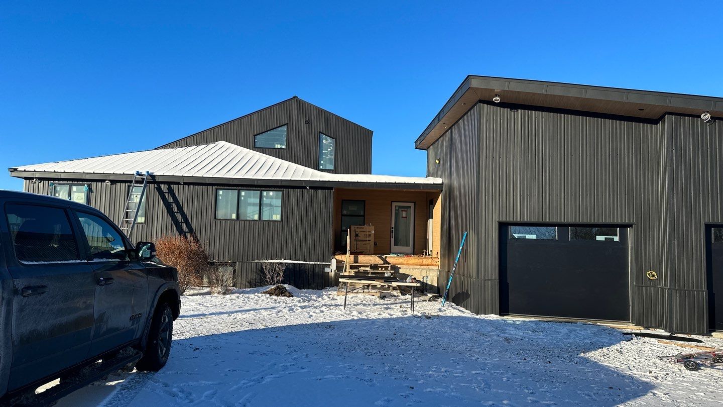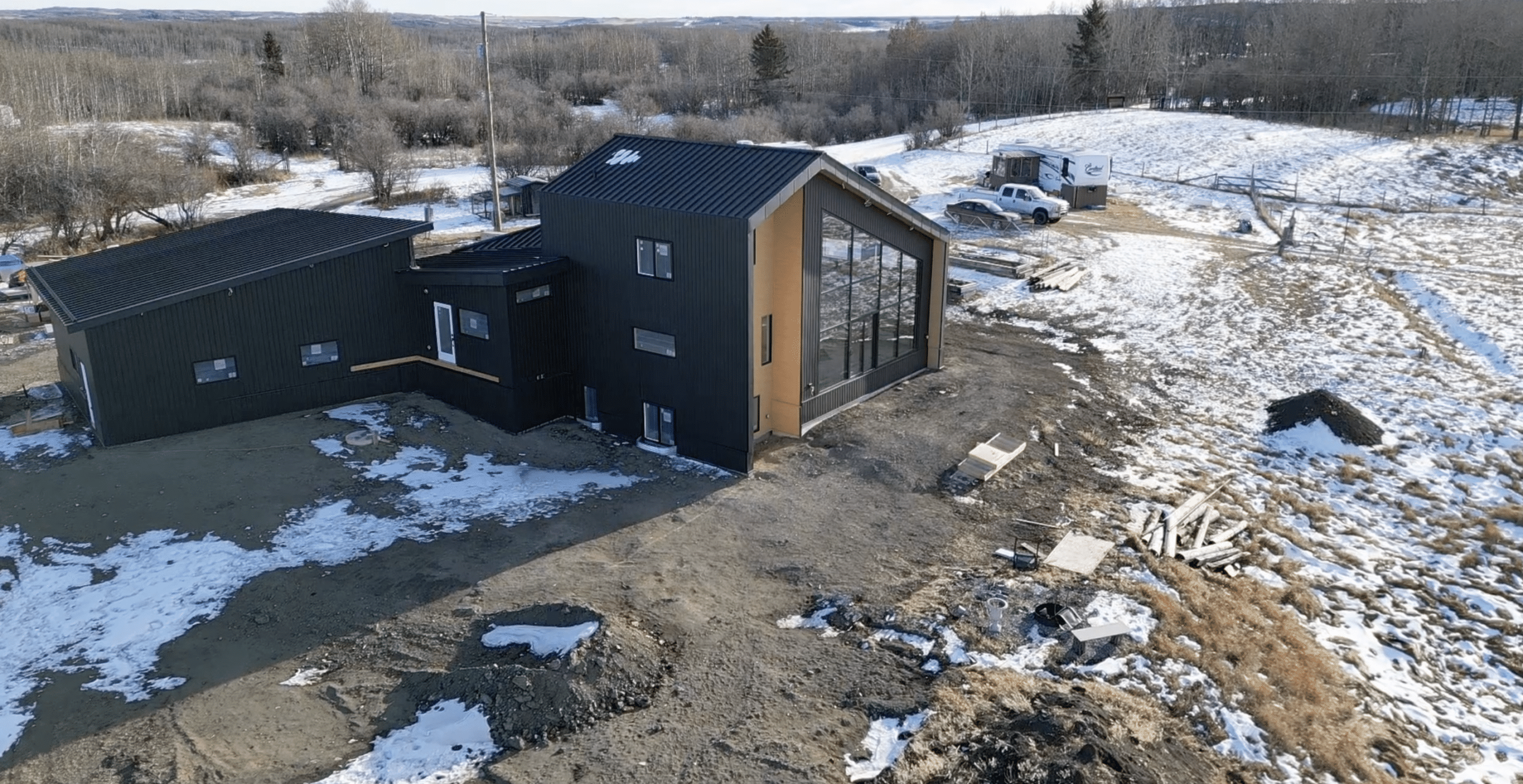 This project in Rocky View County features a full standing seam metal roofing and metal cladding installation completed using premium materials and precise detailing. Finished in Onyx Black, the roof and wall panels create a clean, modern exterior that fits perfectly into Alberta’s rural landscape while offering long-term durability.